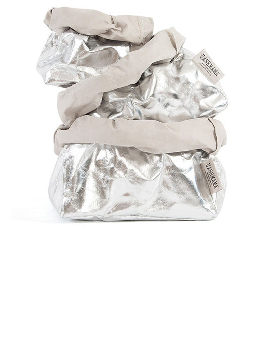UASHMAMA paper bags are machine washable, however to maintain the solid metallic finish we advise to handwash or simply wipe clean. Unroll bag and wash in warm water using a mild soap or detergent, rinse thoroughly and dry flat.